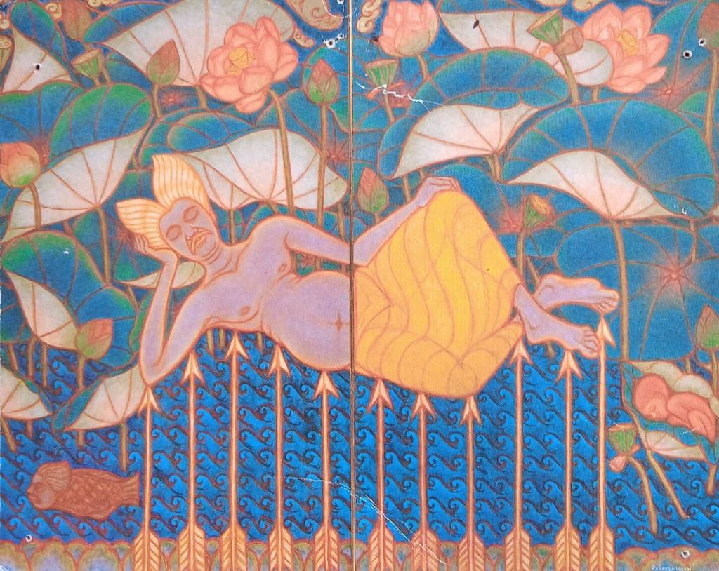 It was a difficult theme and even after I had collected enough material, I was filled with doubt about my ability to write a full-length book when all that I had written till then were short articles, short stories and poems. Browsing through India Today of 2nd Nov. 1998, I came across an interview of artist Attingal Ramachandran. One of his paintings took my breath away. Two girls holding hands stood in the middle of climbers interspersed with blue flowers and human faces. The painting was titled, Aparajita and the Flowers but the girls were my lead characters, Maya and Amrita!